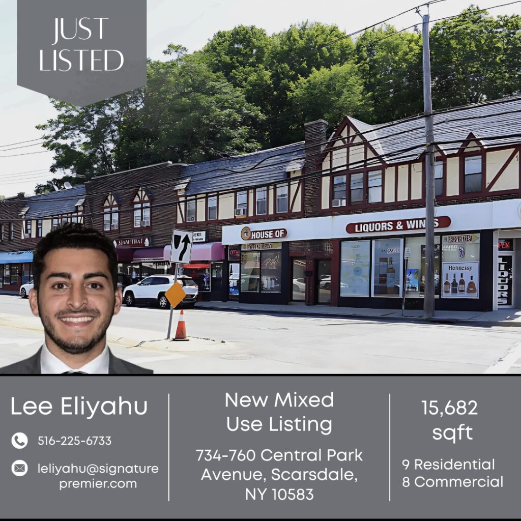 DESCRIPTION: Corner five building mixed-use package on Central Park Avenue in prime Scarsdale, mixed-use impact district consisting of (9) Residential Units over (8) Commercial Units and a 16+ parking lot in the rear. The property has been under the same ownership for over 30 years and offers immediate upside on residential unit turnover and potential redevelopment.
